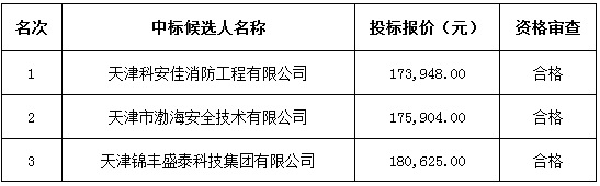 中 标 人:天津科安佳消防工程有限公司。